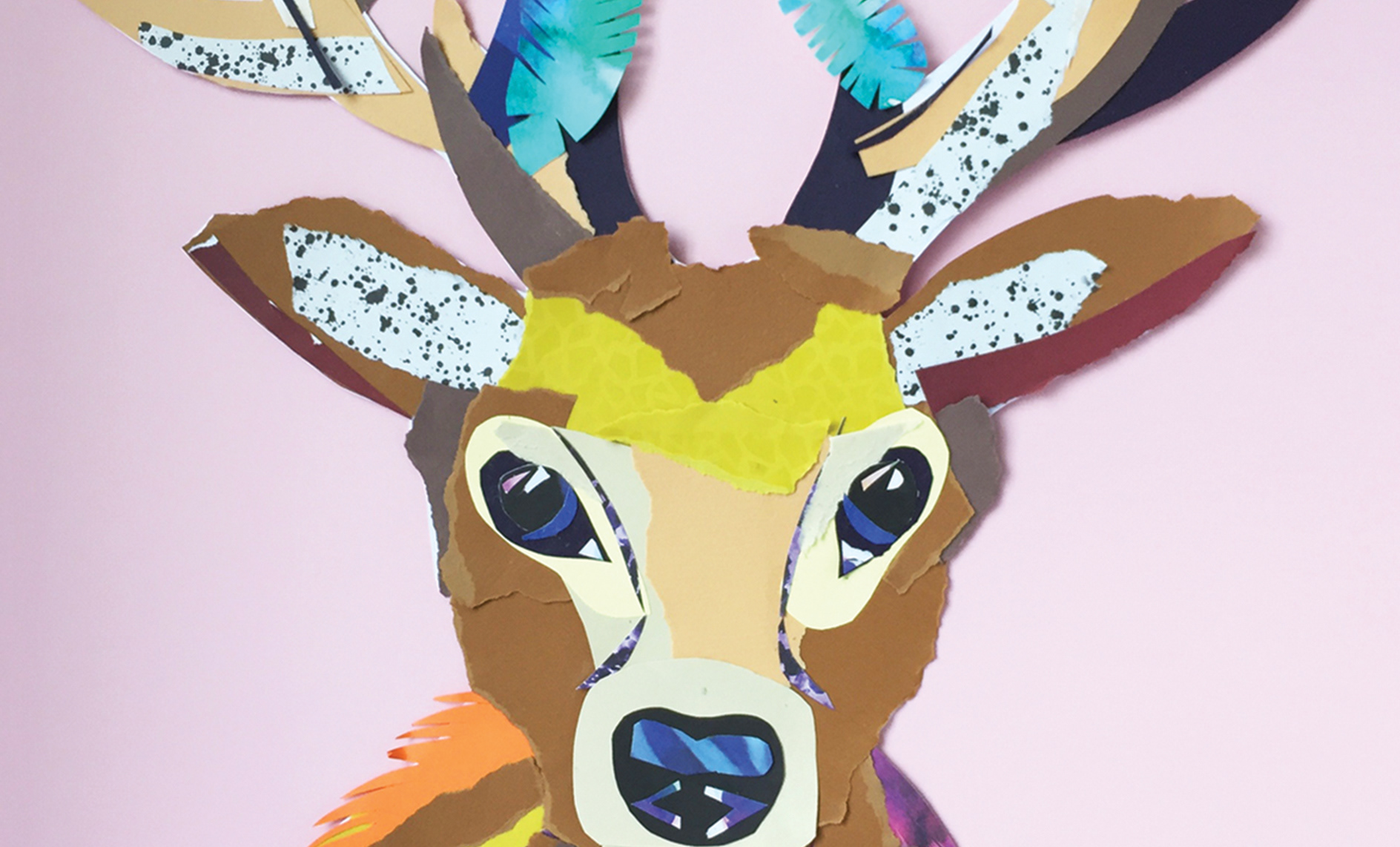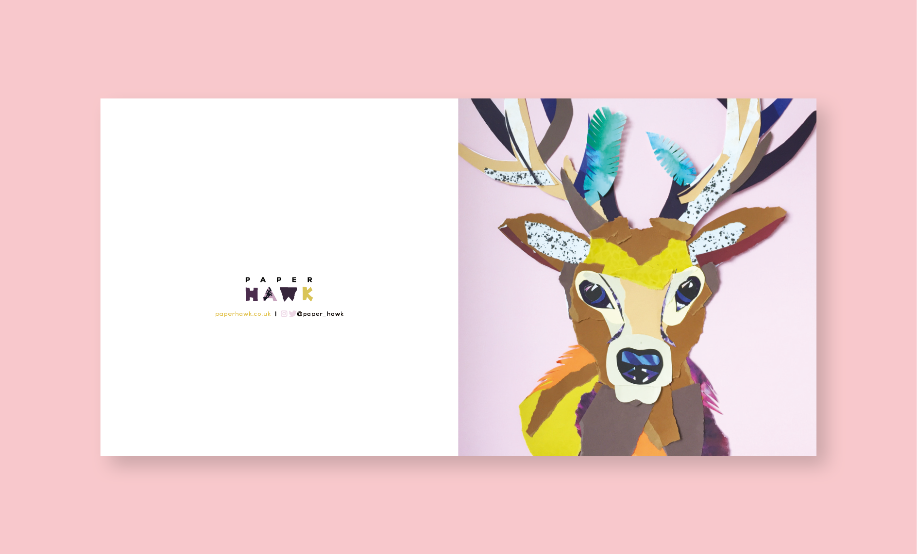 Promotional Christmas Card for my sister brand 'Paper Hawk', featuring a paper illustration of a Christmas Deer.