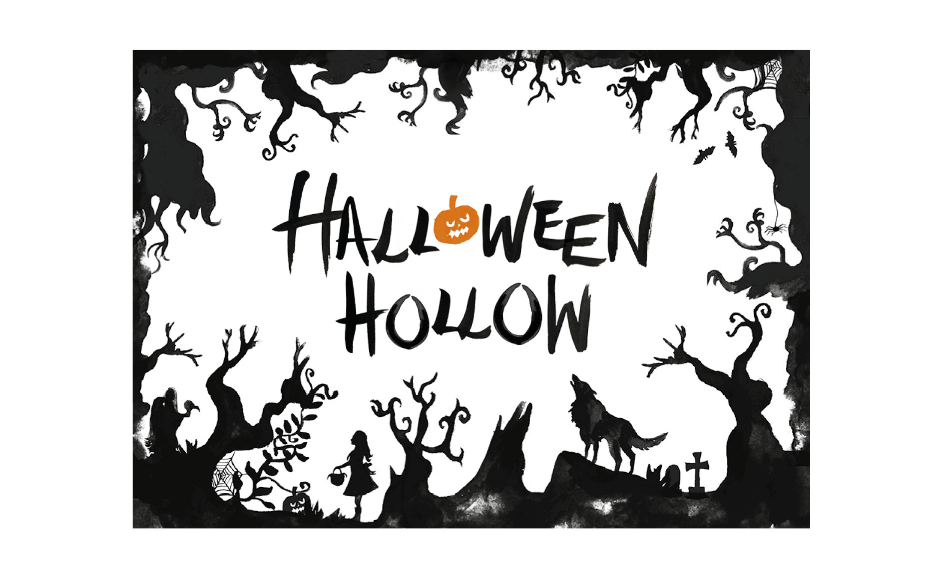 Ink-based illustration and design work for Hallowe'en Hollow, a London based Pop-up, celebrating all thing Hallowe'en!