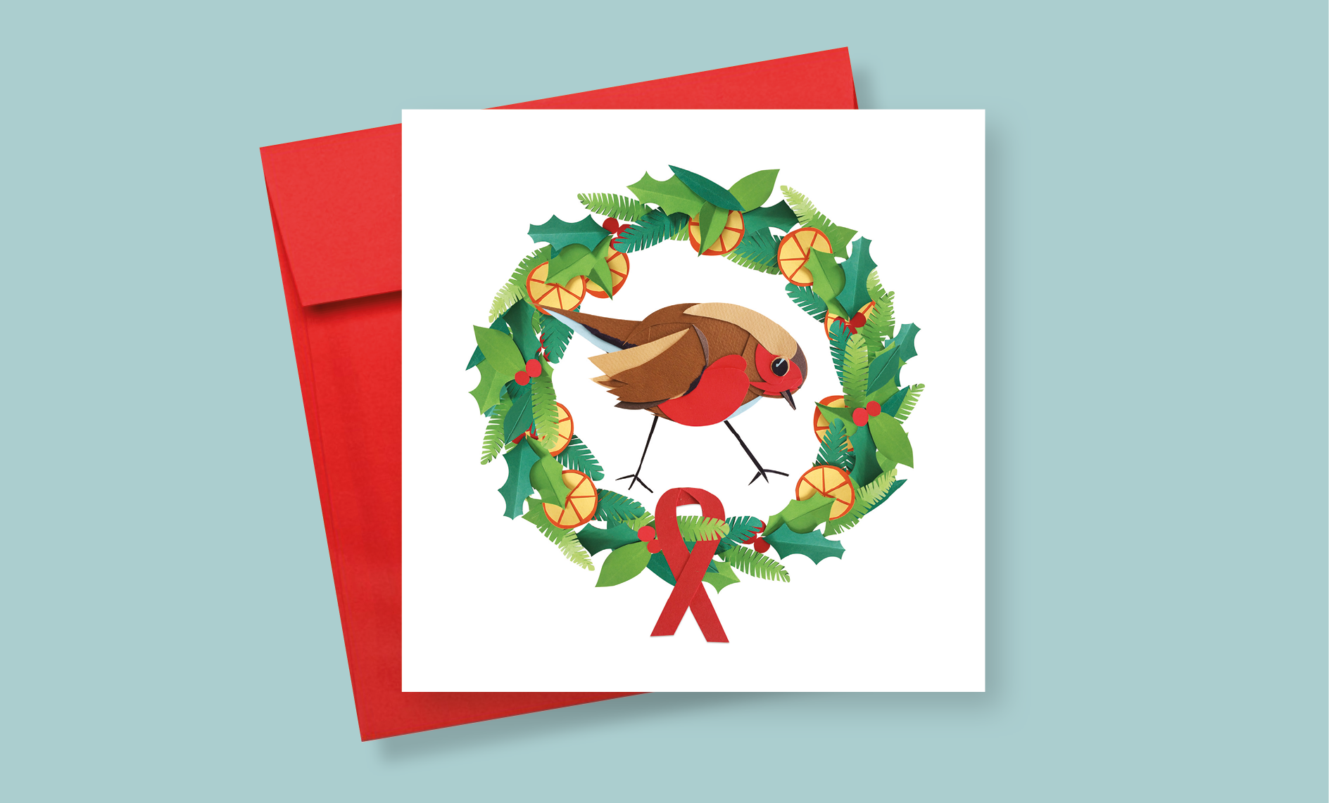 Paper collage illustrated design for The National Aids Trust's Christmas Card.