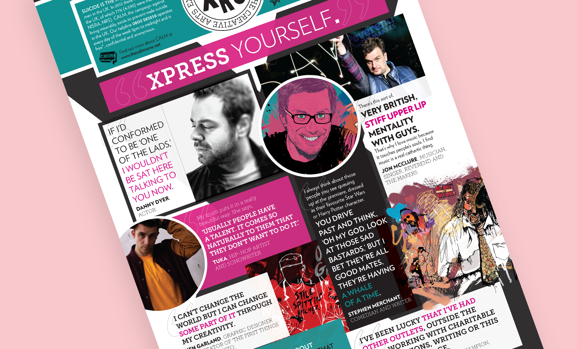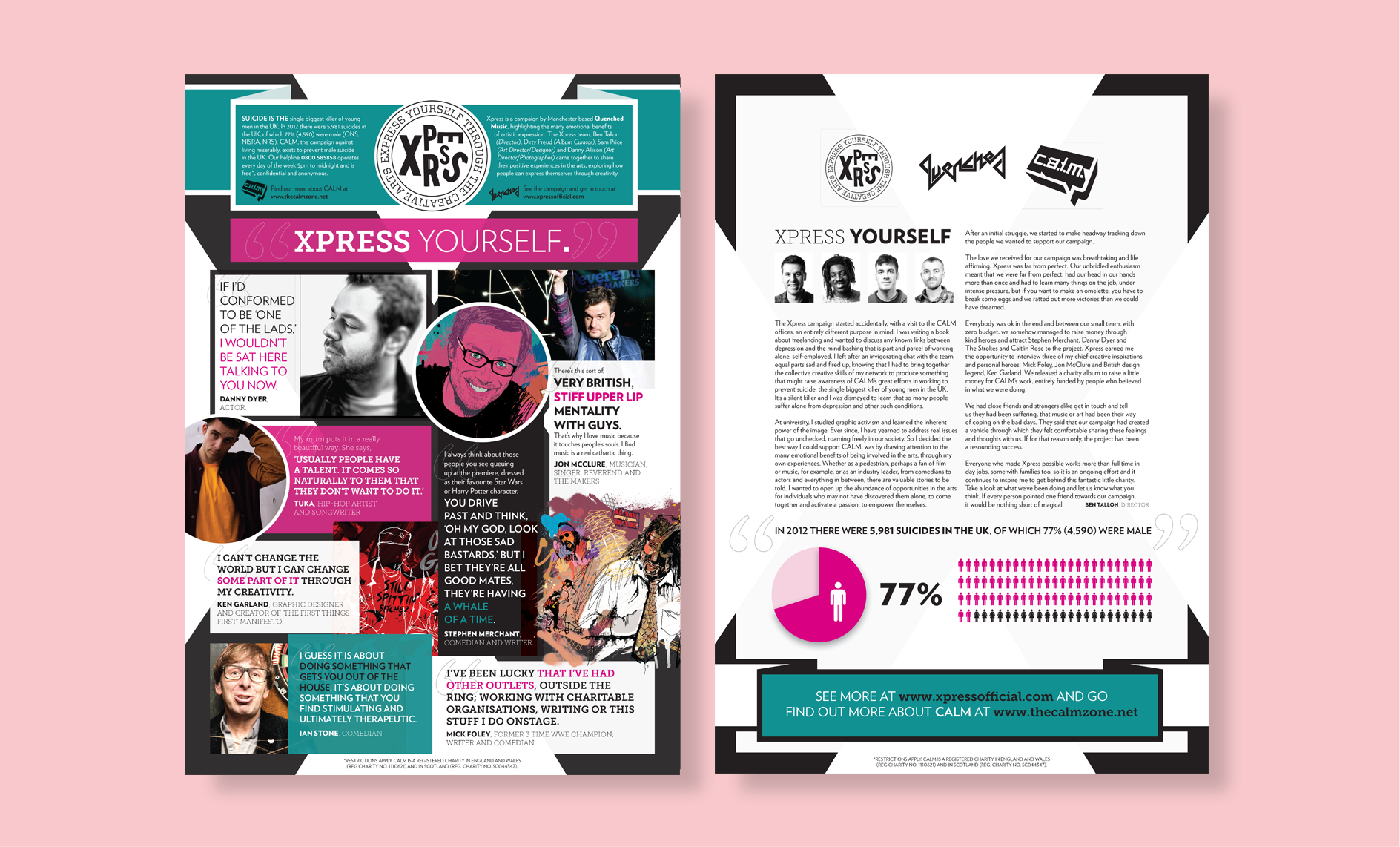 Information poster as a round-up of the Xpress Campaign, created on behalf of CALM (Campaign Against Living Miserably).